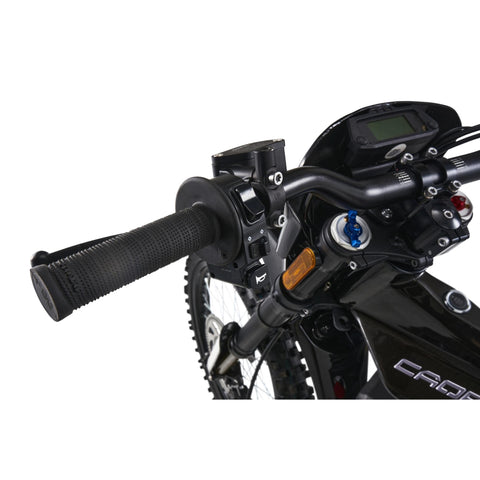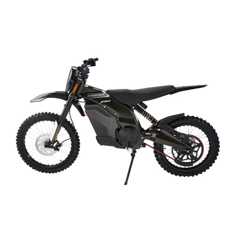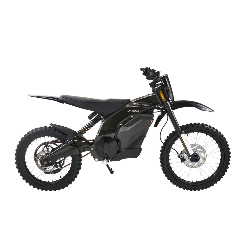 The Caofen F80 Off-road e-bike is an 8kw based 72v fixed battery 53mph Electric dirt-bike.