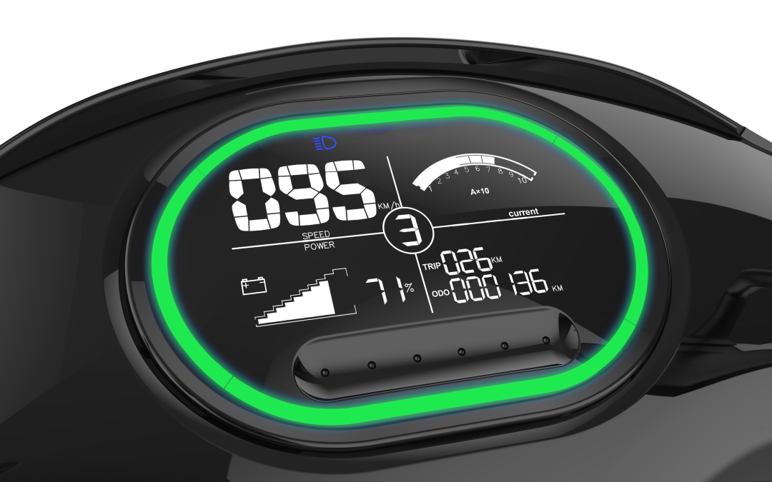 The big display of the HORWIN EK3 shows you all the information you need during your journey. Current & average speed, SOC, trip, ODO and a whole lot more. The slide-to-start function under the display offers a new simpler way to start your trip. Combining modern design with the latest technology, the backlit dash displays information clearly regardless of ambient light conditions.