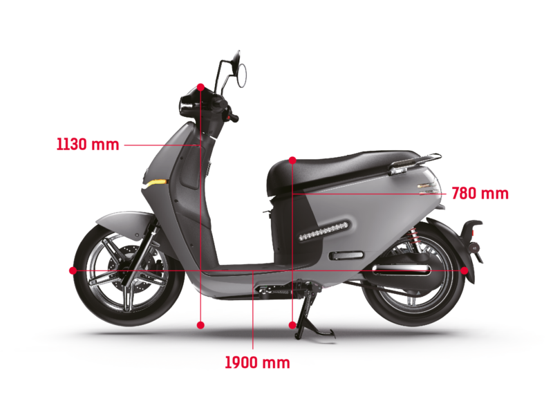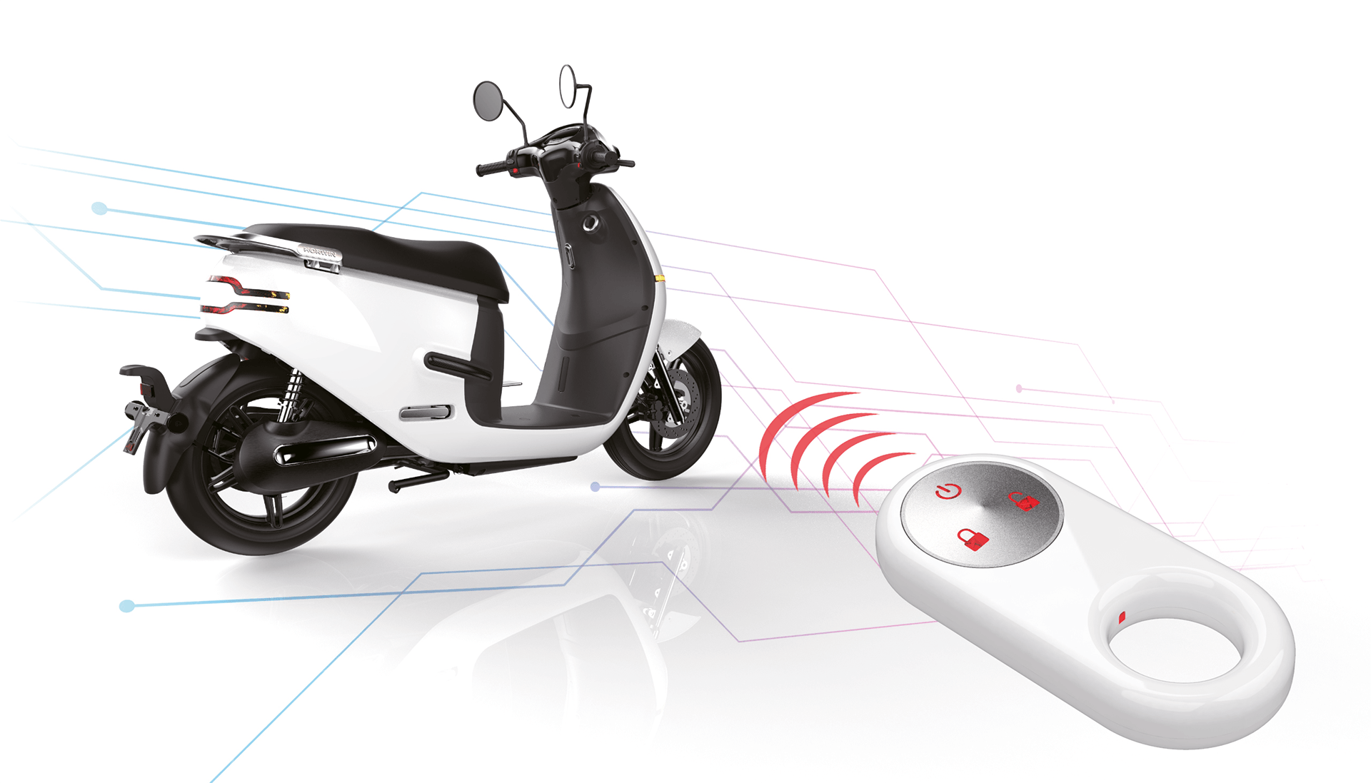 The scooter key conveniently features an integrated remote control. This means that you can start up, switch off and immobilise the e-scooter without even having to place the key in the ignition switch!
