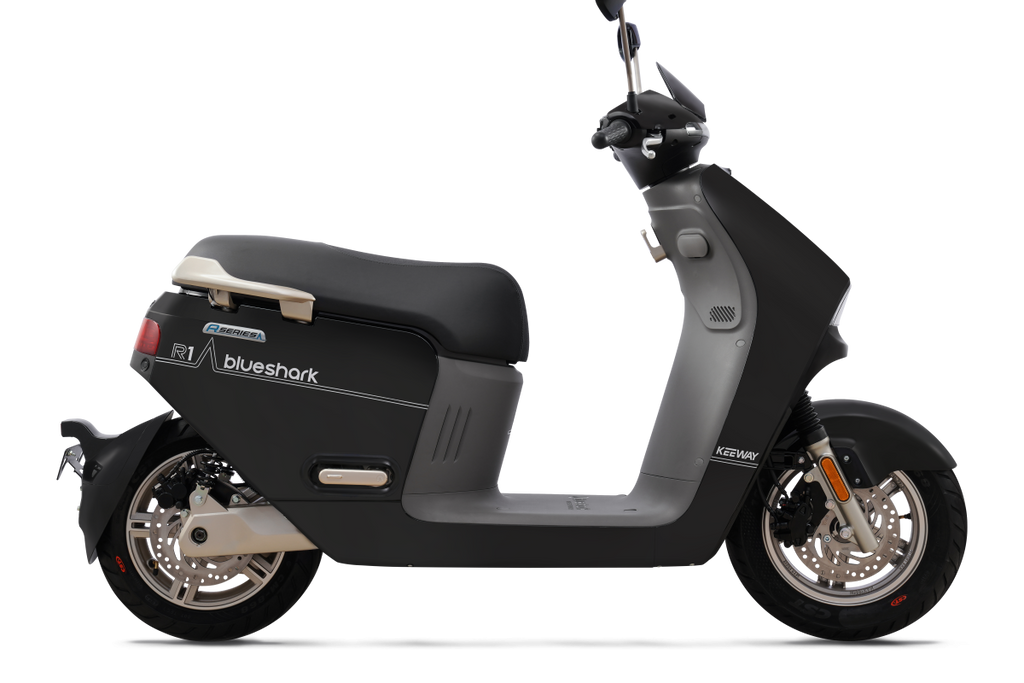 Keeway Blueshark Electric Scooter is the ideal zero-emission moped for modern urban commuters who are looking for a reliable, innovative, and easily handled e-scooter. This high-performance scooter is equipped with a cutting-edge permanent magnet gear motor, dual LFP batteries, and advanced automotive technologies such as ADAS, IPS HD panel screen, and 74 sensors embedded in an Android-based ArkRide OS, making it one of the best bikes near you. With a market-leading range of just under 60 miles when using eco mode, the Blueshark has the ability to change the balance between power performance and cruising distance by using its two batteries in parallel or sequentially. This makes it perfect for long commutes or leisure rides around town. The large display that exhibits the amalgamated information is beautifully integrated, praised overall for its advanced look by the press that is very fitting for an electric scooter, derived from its combination of an iconic exterior design and modern details. You can easily navigate through the menu using the intuitive controls, and the display also shows you important information such as speed, battery level, and range. The Blueshark also features keyless ignition, either using the remote fob or by using the fingerprint scanner, which can have multiple users added to the system. This adds another level of security to the scooter, making it one of the most secure scooters on the market. In addition to the built-in alarm system, which gives an audible warning and flashes the lights once activated, the Blueshark also has a built-in tracker that can be viewed via the Blueshark app on your phone. This gives you access to many other features, such as the ability to lock and unlock the scooter remotely, view your trip history, and even track your scooter in real-time. One of the key safety features of the Blueshark is the built-in camera system, which records your trips and stores them on the internal hard drive and cloud system.