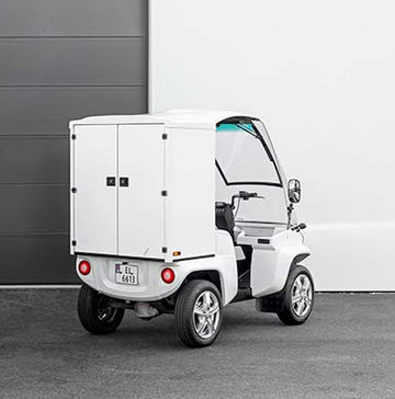 The Paxster Cargo is the ultimate business utility vehicle for city centers. Fully electric, with 1250L capacity and 240kg load limit, it can nip through city streets and deliver faster than traditional vans.