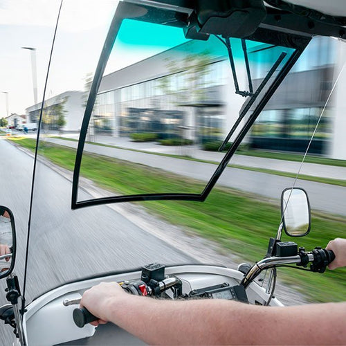 Large Windscreen with Defroster and Large Mirrors