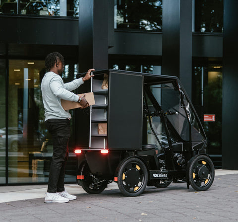 Vok S is a durable series-hybrid cargo bike. It fits on bike lanes to bypass traffic. Operators enjoy lower upkeep costs and a wider talent pool thanks to no driving licence requirement.
