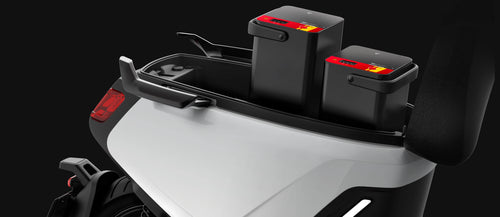 Equipped with two batteries giving a range of up to 60 miles, the Niu NQi GT Pro Cargo electric moped-style scooter makes for a practical town or city delivery transport choice. Powered by a 3500w Bosch motor, the NQi GT Pro Cargo has a top speed of 45 MPH ensuring you can make your deliveries on time. Equipped with a large rear rack allowing for a generously sized top box (sold separately) to be fitted for a range of cargo needs.