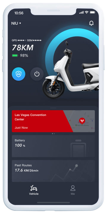 The NIU app gives you 24/7 access to your vehicle with live monitoring. Within a few taps you can see where your vehicle is, the charge rate and health status.